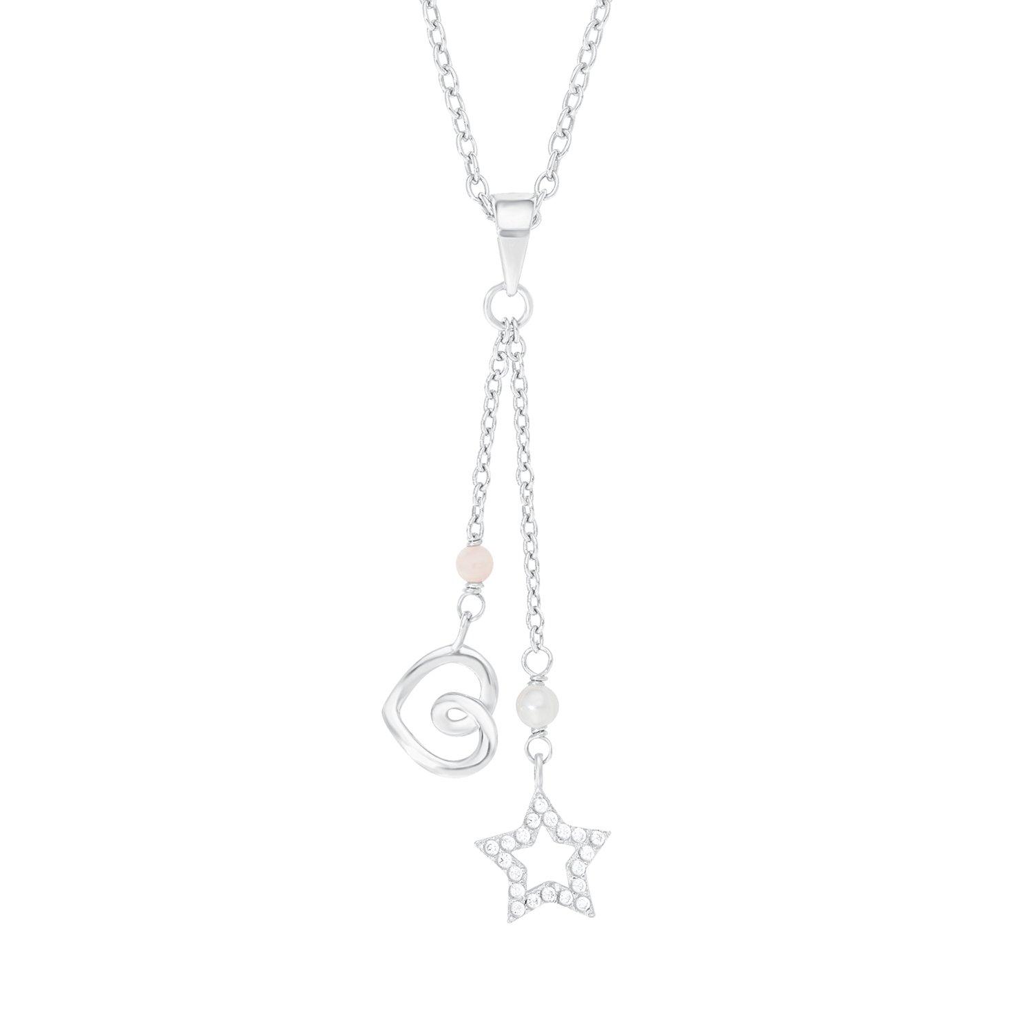 Kinder Kette aus Silber mit einem Herz und Stern-Anhänger, sowie zwei SWZuchtperlen.