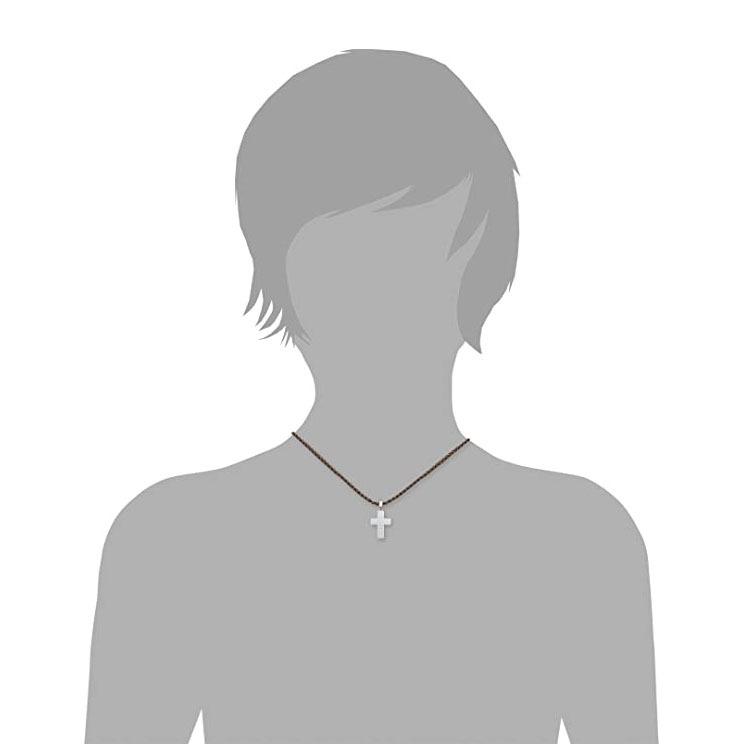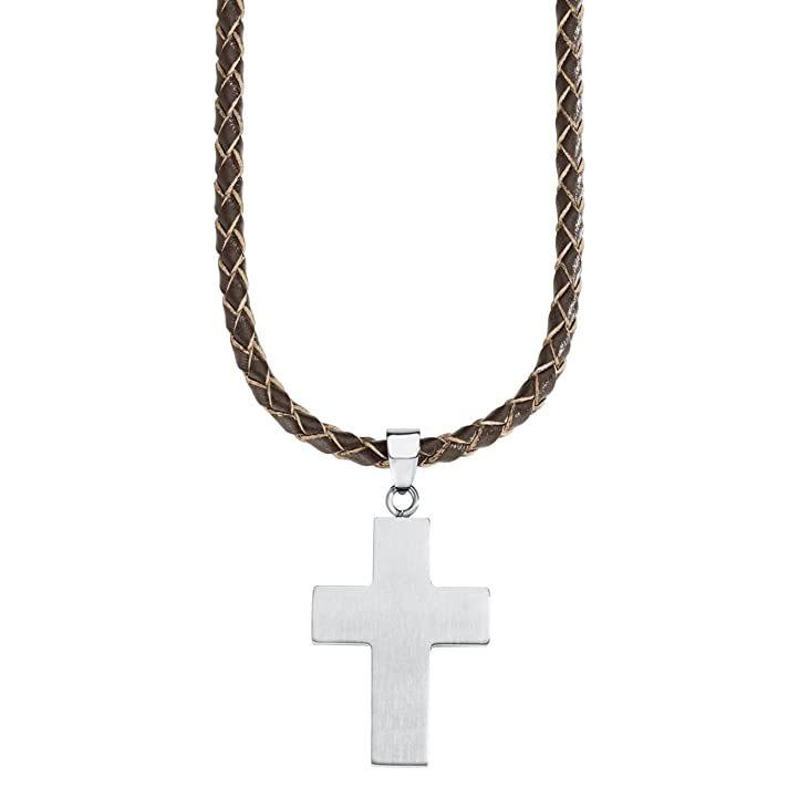 s.Oliver Halskette aus geflochtenem braunen Leder, veredelt mit einem Kreuzanhänger aus Edelstahl
